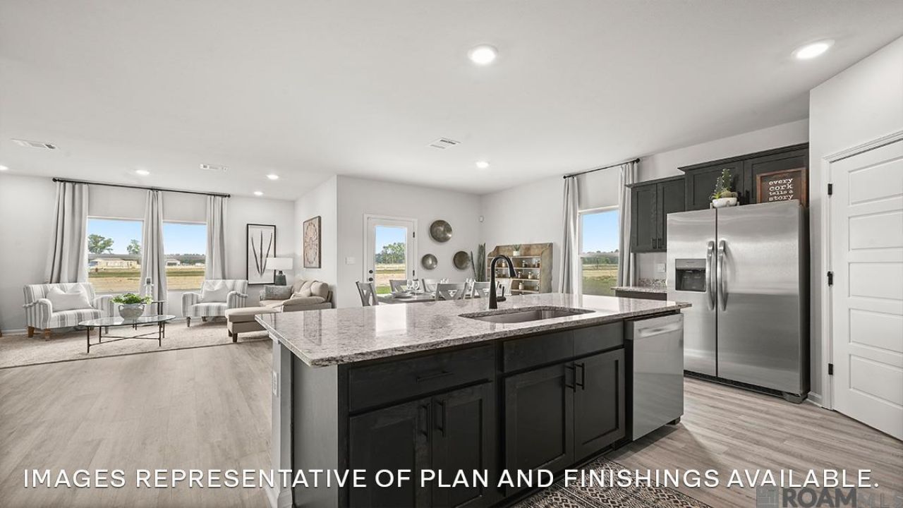 Introducing the Eastwood floorplan, a single-story home located in Trivento, a new home community in Zachary, Louisiana. This thoughtfully designed 4-bedroom, 2-bathroom home offers 1,658 square feet of modern living space, with three beautiful exterior options to choose from. Step inside to discover an open-concept layout that seamlessly blends comfort and functionality. The kitchen is a chef's dream, featuring shaker-style cabinets, sleek gooseneck pulldown faucets, stainless-steel appliances, and durable 3 cm granite countertops. A large corner pantry and a separate laundry room provide added convenience and storage. The Eastwood offers plenty of room for relaxation and entertainment. The living room flows effortlessly into the dining room, creating the perfect space for family gatherings. All D.R. Horton homes comes fully equipped as a smart home. Each of the four bedrooms is equipped with cozy carpeting and generous closet space, ensuring comfort and storage for all. The private primary bedroom is located at the rear of the home and includes an en suite bathroom with a dual vanity, a walk-in closet, bath tub and separate shower, a separate linen closet, and a water closet for added privacy. Experience the convenience and charm of the Eastwood floorplan. Contact us today to schedule a tour and learn more about making this beautiful home yours! Disclaimer: final options, finishes, colors, etc. are subject to change until home is finished.