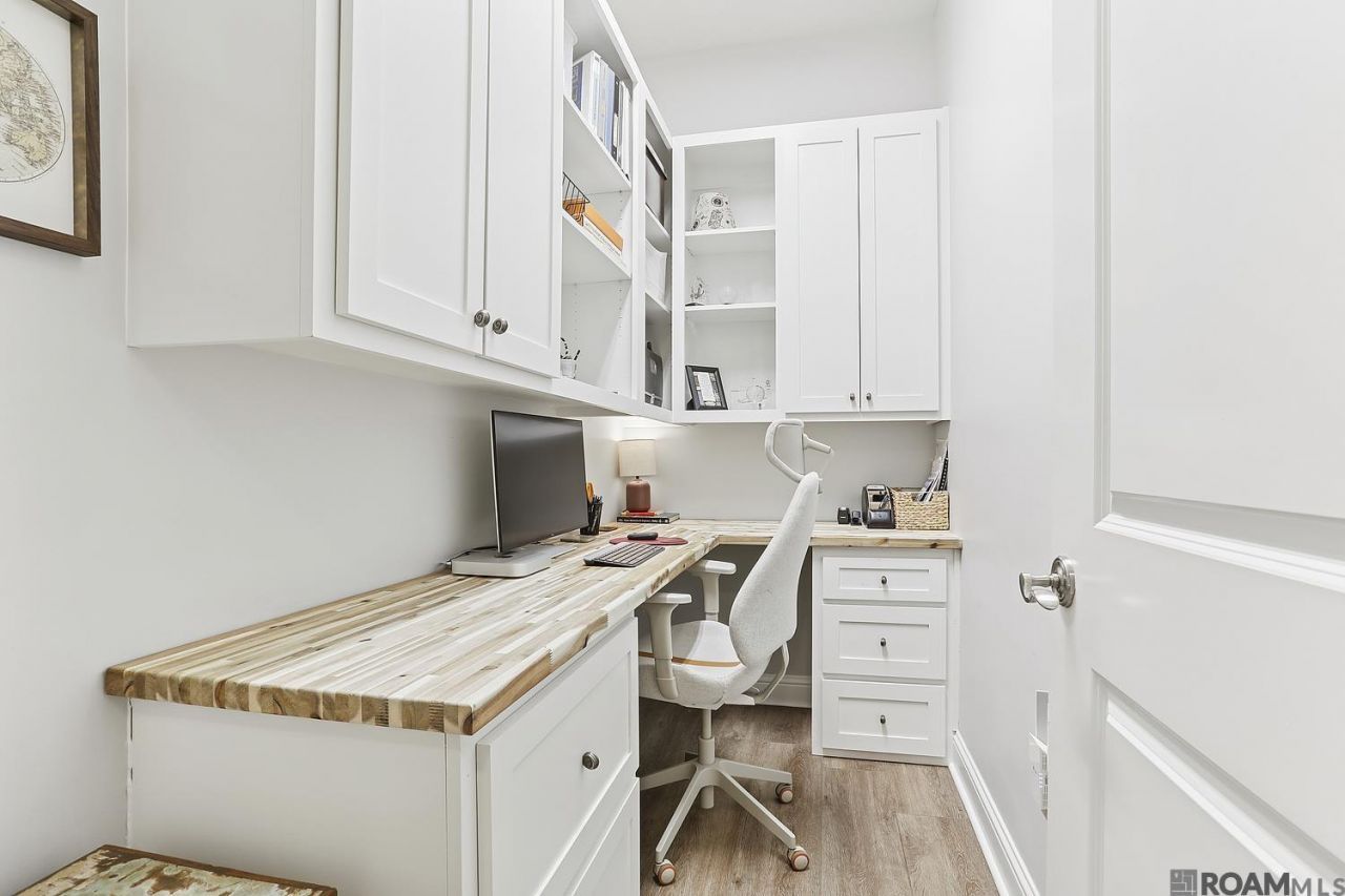 A 3-bed, 2-bath in the prestigious Crescent Condominiums across from the Iconic LSU lakes. This large second-floor condo has same-floor access to, and is only a few steps away from, the resort-style pool, fitness center, and clubhouse. Two separate custom-built office spaces with ample cabinets for Him and Her make this unit unique for hybrid-work professionals, focused students, or organized retirees. This unit has a large balcony with a built-in gas grill and plenty of space for outdoor seating. The kitchen includes beautiful granite countertops, luxury Stainless Steel appliances, an undercounter drink fridge, and plenty of counter space to cook and entertain. The formal sitting room boasts custom-built bookshelves that perfectly match the carpentry and style of the rest of the condo, including the custom Plantation shutters on every window throughout the entire condo and the built-in fireplace. All three bedrooms contain large walk-in closets, and the primary bedroom has its own large luxury bathroom as well as its own private balcony. The unit is in the perfect location of short-distance to all city life, shopping, and LSU's campus, including the LSU Tigers Stadium! But it is also tucked away and far enough to not worry about traffic noise. The gated community offers access to a high-quality heated pool and spa, fitness center, cardroom/library, walking trails, a private lake, and 15 acres of grass. This is a must see!